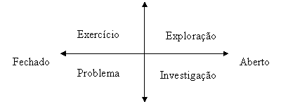 tipos de tarefas matemáticas, Ponte (2003) distingue, em um diagrama,