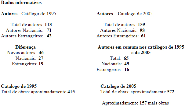 A escolha do catálogo de 1995 se fez por ser este o ano em que