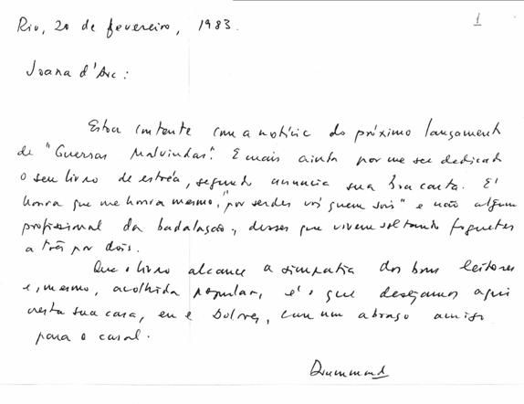PRESENTE: CARTAS DE DRUMMOND PARA JOANA D’ARC